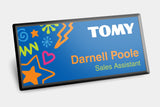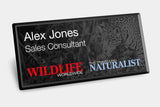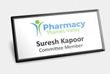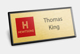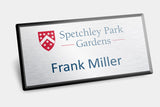 Framed Name Badges are metal badges housed in a black plastic frame for enhanced durability in tough working environments. Available in Silver, Gold and White as standard or we can print it any colour you like.